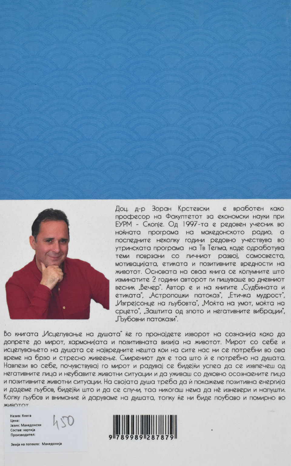 Во книгата „Исцелување на душата“ ќе го пронајдете изворот на сознанија како да допрете до мирот, хармонијата и позитивната визија на животот. Мирот со себе и исцелувањето на душата се највредните нешта кои на сите нас ни се потребни во овој време на брзо и стресно живеење.