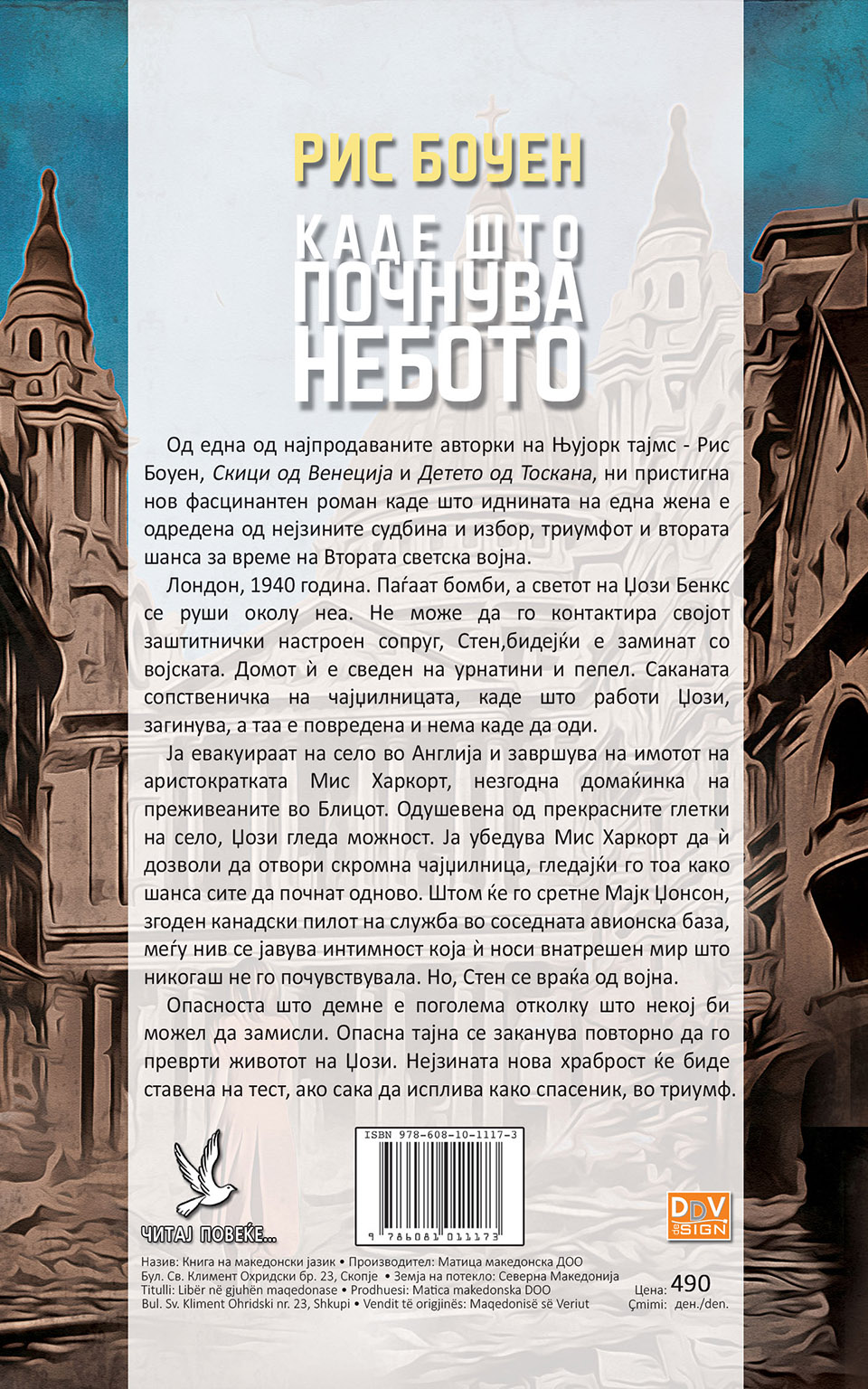 **Каде што почнува небото** е новиот роман од познатата авторка Рис Боун, која е позната по своите бестселери како “Скици од Венеција” и “Детето од Тоскана”. Во овој фасцинантен историски роман, Боун нè води во Лондон во 1940 година, во време на Втората светска војна, каде што главната хероина, Џози Бенкс, се соочува со катастрофални последици од бомбардирањето. Нејзиниот живот е во хаос, а љубовта и надежта се на тест.