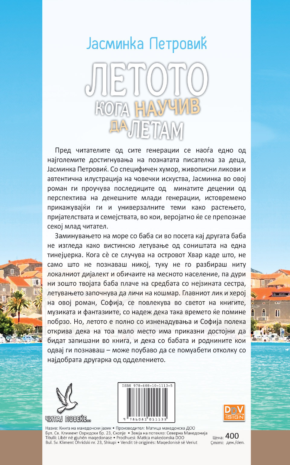 “Летото кога научив да летам” од Јасминка Петровиќ е роман кој ги освојува срцата на читателите од сите генерации. Јасминка Петровиќ, позната по својата способност да создава живописни ликови и да вметнува специфичен хумор во своите дела, во оваа книга ги истражува последиците од минатите децении и нивното влијание на денешните млади. Со акцент на универзалните теми како растење, пријателства и семејни врски, “Летото кога научив да летам” нуди длабока и емотивна перспектива која ќе се допадне на секој млад читател.