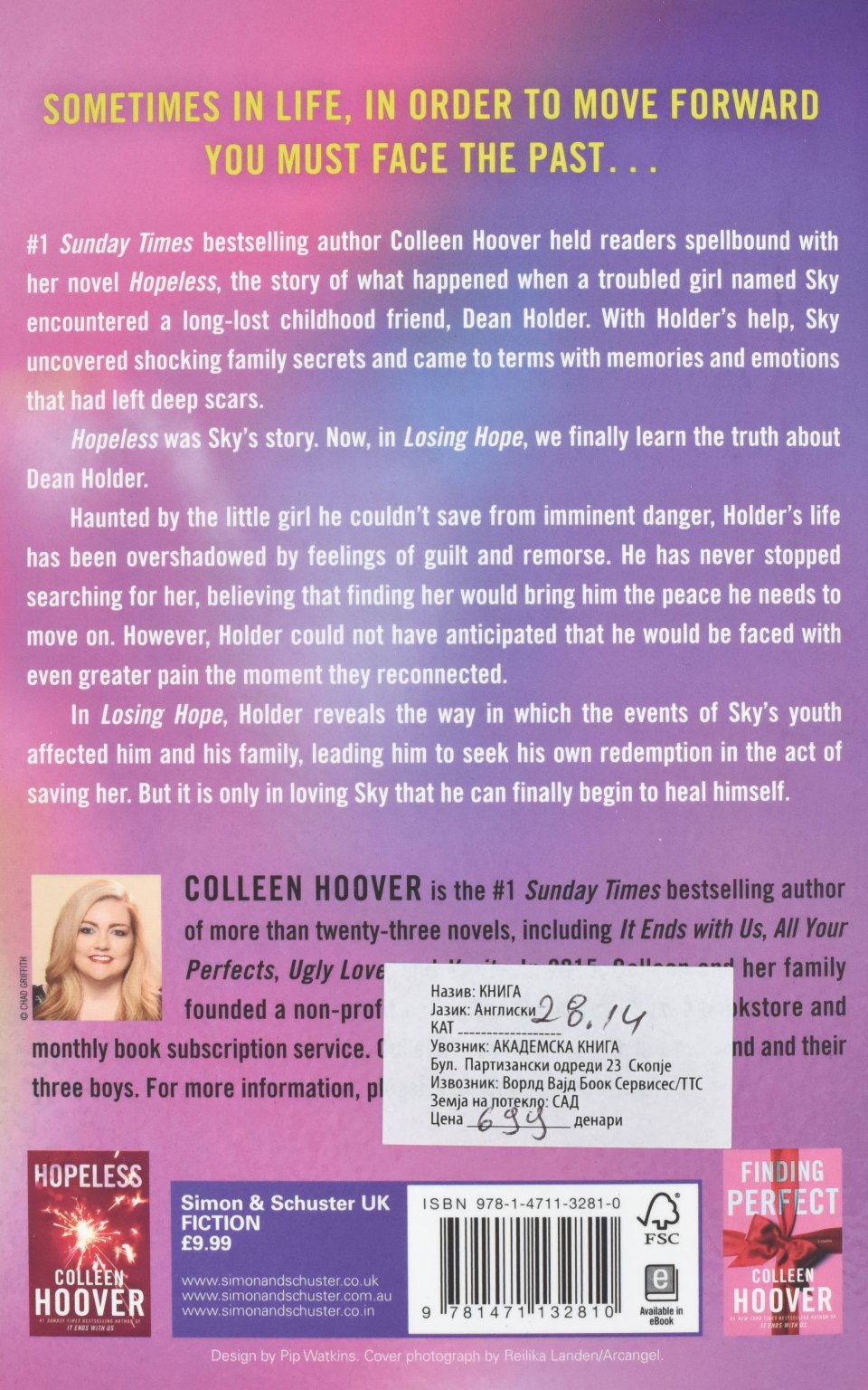 #1 Sunday Times bestselling author Colleen Hoover held readers spellbound with her novel Hopeless, the story of what happened when a troubled girl named Sky encountered a long-lost childhood friend, Dean Holder. With Holder’s help, Sky uncovered shocking family secrets and came to terms with memories and emotions that had left deep scars.