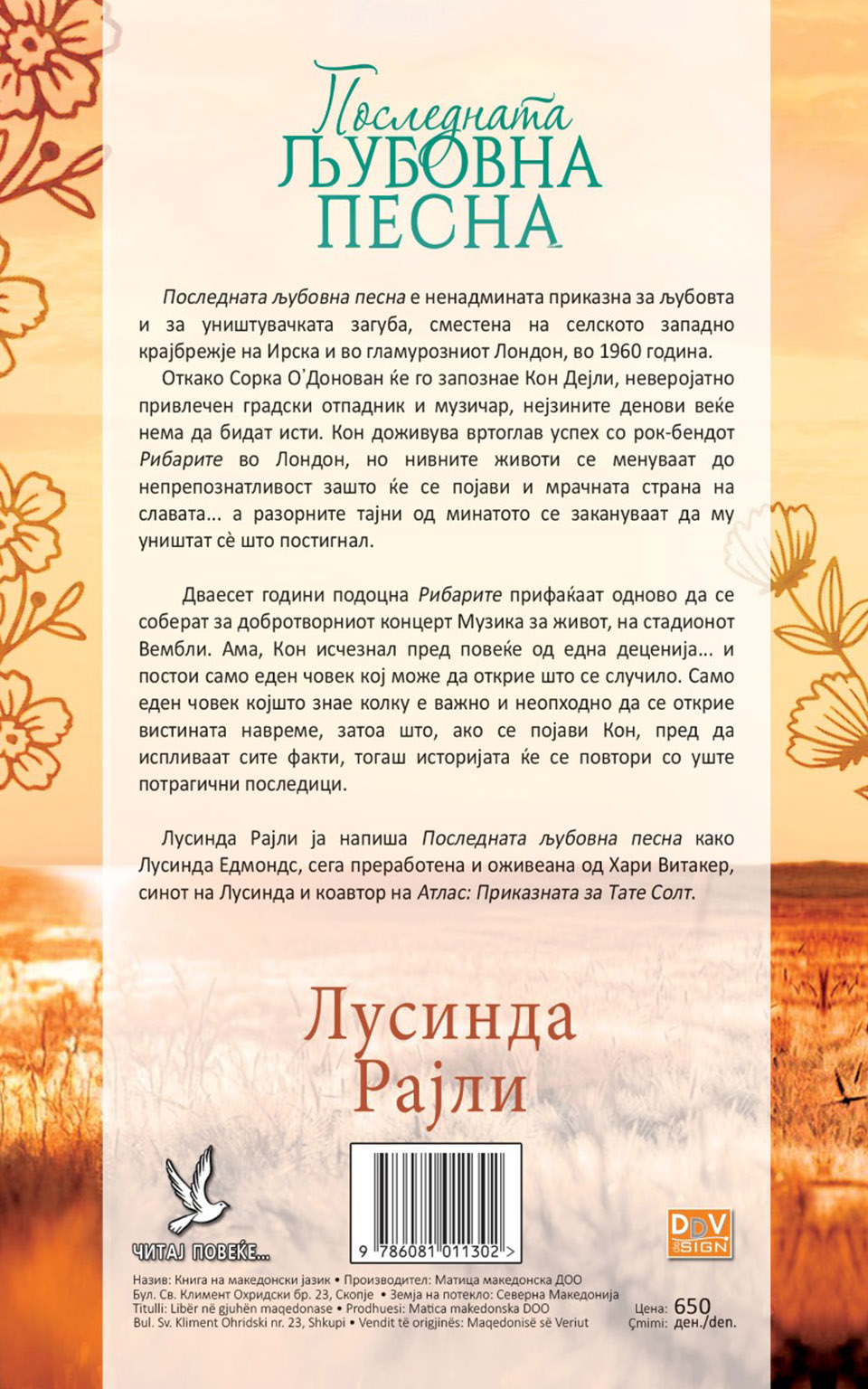 Лусинда Рајли ја напиша Последната љубовна песна како Лусинда Едмондс, сега преработена и оживеана од Хари Витакер, синот на Лусинда и коавтор на Атлас: Приказната за Тате Солт.