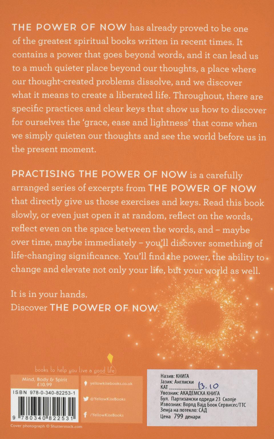 Practising the power of now is a carefully arranged series of excerpts from THE POWER OF NOW that directly give us those exercises and keys. Read this book slowly, or even just open it at random, reflect on the words, reflect even on the space between the words, and – maybe over time, maybe immediately – you’ll discover something of life-changing significance. You’ll find the power, the ability to change and elevate not only your life, but your world as well.