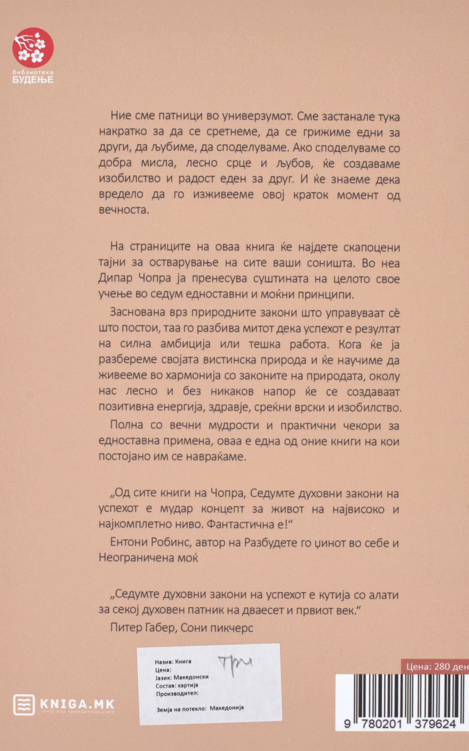 На страниците на оваа книга ќе најдете скапоцени тајни за остварување на сите ваши соништа. Во неа Дипар Чопра ја пренесува суштината на целото свое учење во седум едноставни и моќни принципи.