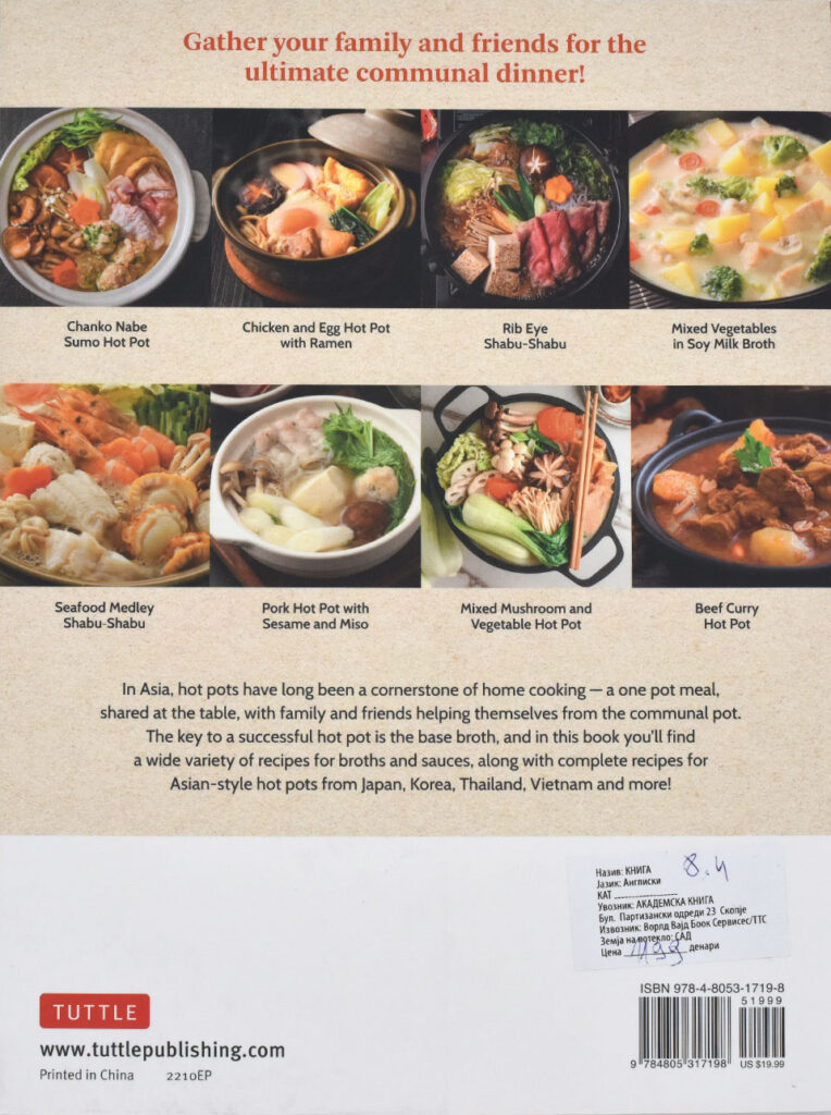 The key to a successful hot pot is the base broth, and in this book you’ll find a wide variety of recipes for broths and sauces, along with complete recipes for Asian-style hot pots from Japan, Korea, Thailand, Vietnam and more!