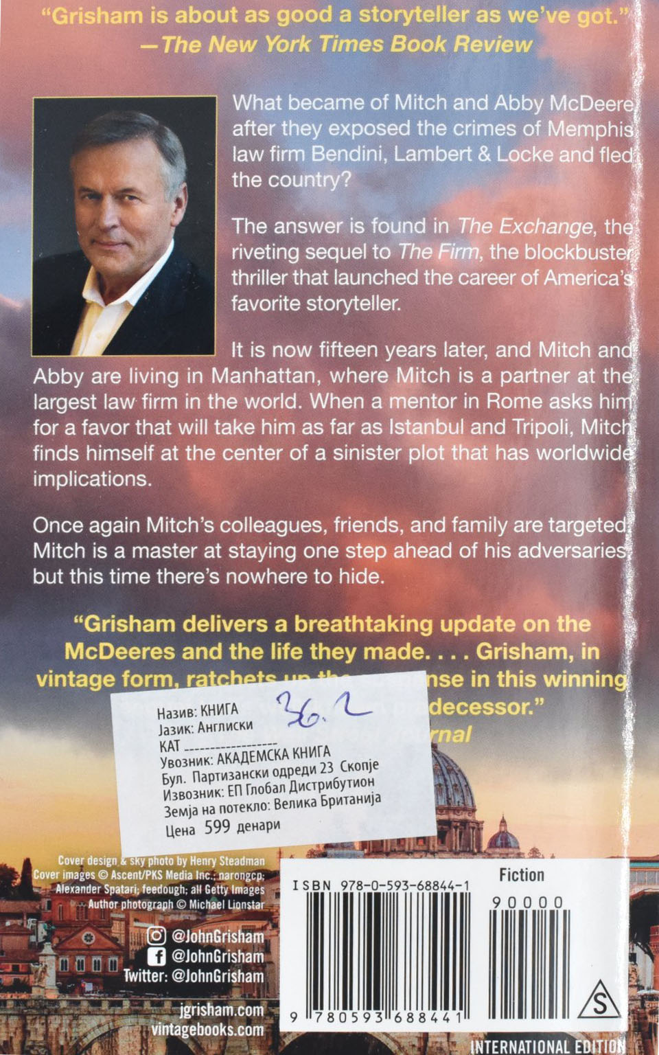 The answer is found in The Exchange, the riveting sequel to The Firm, the blockbuster thriller that launched the career of America’s favorite storyteller.