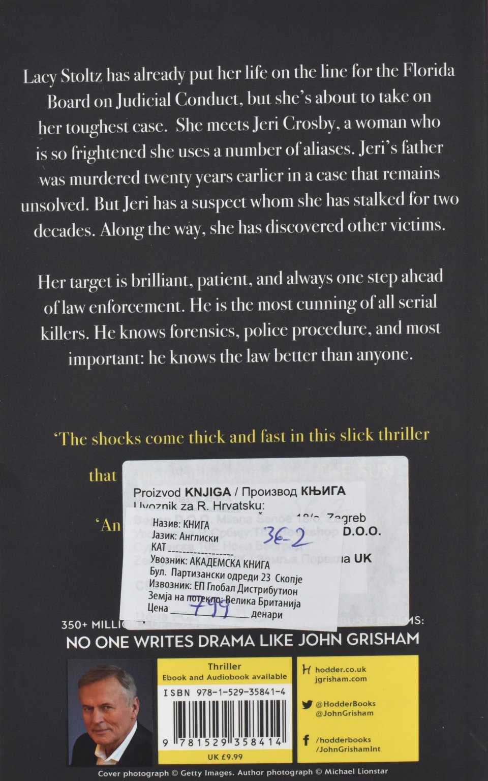 Lacy Stoltz has already put her life on the line for the Florida Board on Judicial Conduct, but she’s about to take on her toughest case. She meets Jeri Crosby, a woman who is so frightened she uses a number of aliases. Jeri’s father was murdered twenty years earlier in a case that remains unsolved. But Jeri has a suspect whom she has stalked for two decades. Along the way, she has discovered other victims.