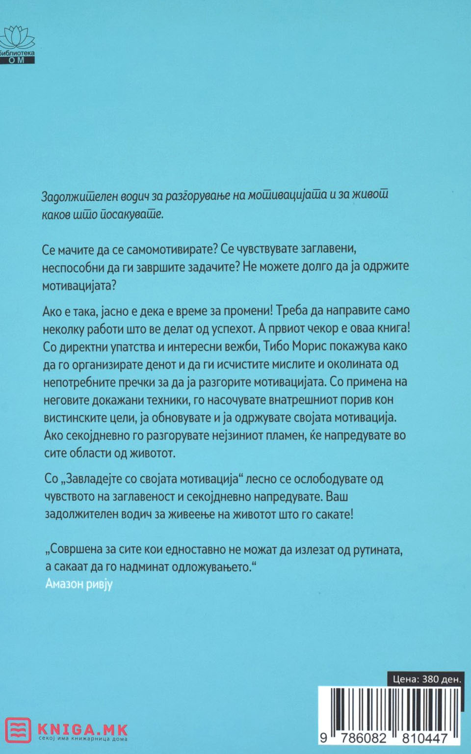 Ако е така, јасно е дека е време за промени! Треба да направите само неколку работи што ве делат од успехот. А првиот чекор е оваа книга! Со директни упатства и интересни вежби, Тибо Морис покажува како да го организирате денот и да ги исчистите мислите и околината од непотребните пречки за да ја разгорите мотивацијата. Со примена на неговите докажани техники, го насочувате внатрешниот порив кон вистинските цели, ја обновувате и ја одржувате својата мотивација. Ако секојдневно го разгорувате нејзиниот пламен, ќе напредувате во сите области од животот.