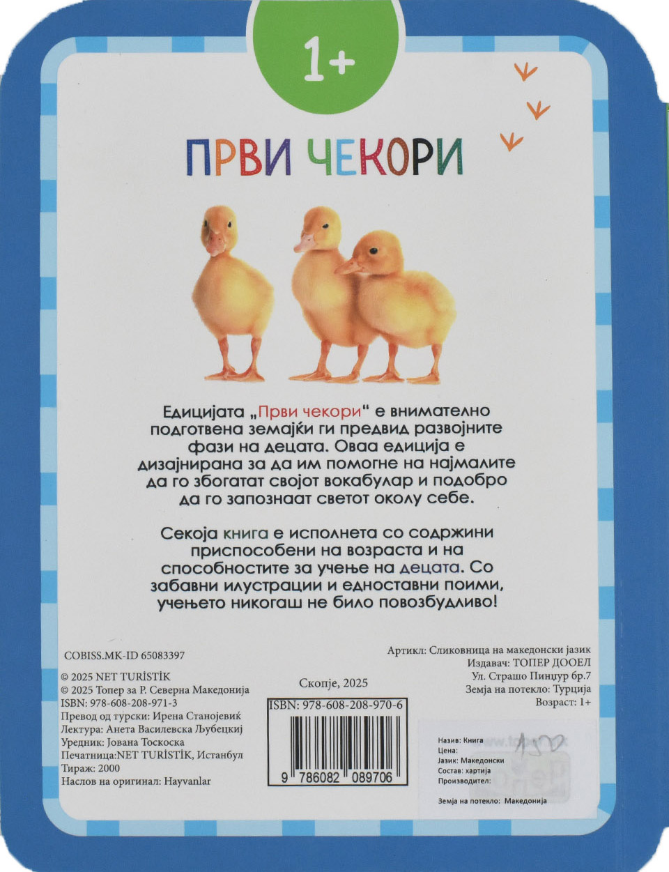 Едицијата „Први чекори” е внимателно подготвена земајќи ги предвид развојните фази на децата. Оваа едиција е дизајнирана за да им помогне на најмалите да го збогатат својот вокабулар и подобро да го запознаат светот околу себе.